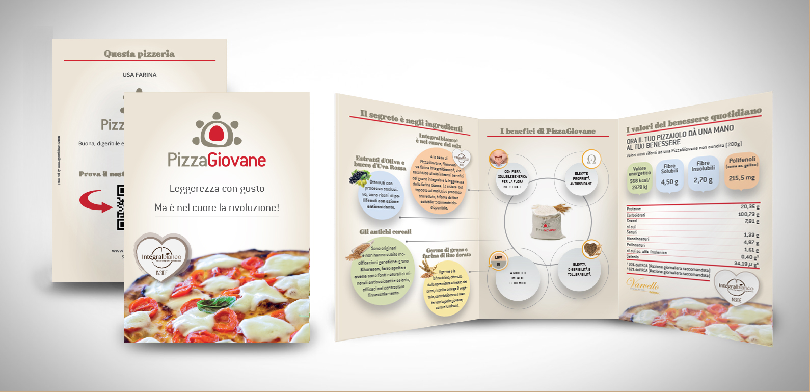 Agenzia Brand ha realizzato la nuova brochure di PizzaGiovane. Affiancato alla presentazione del prodotto per l’utente finale, Agenzia Brand ha scelto di inserire un momento “ludico”… Attraverso un QR code l’utente può provare le sue conoscenze in tema “pizza” e “benessere”, trovando quale profilo PizzaGiovane si avvicina di più a lui.
