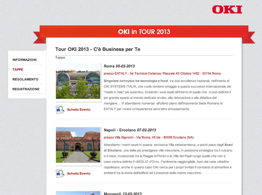 Il sito per la gestione degli eventi nasce nel 2013 da un’esigenza interna all’agenzia ma anche per agevolare l’iscrizione da parte dei partecipanti e la gestione dei file da parte del cliente.